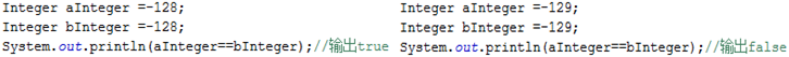 ⑴byte、short、int和long所对应包装类的数据缓存范围为 -128~127(包括-128和127);
