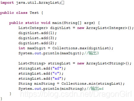 8.max(Collection <? extends T> coll):根据元素的自然顺序,返回给定集合元素中的最大元素
