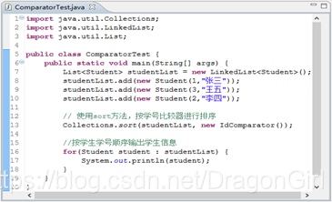2.配合Collections工具类的sort(List list, Comparator c)方法使用。