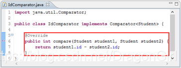 3.在集合内元素之间的比较,由该类的compareTo(Object o)方法来完成,因为这种比较是在类内部实现,所以将Comparable称为内部比较器