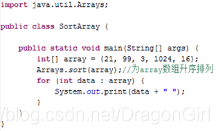 2.static void sort(int[] a):对指定的 int 型数组按数字升序进行排序。