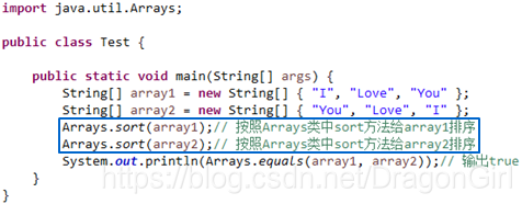 static boolean equals(Object[] a1, Object[] a2):判断构成两个数组的元素是否完全相同,相同返回true,否则返回false。