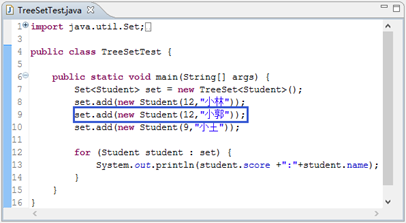 红框:实现了Comparable接口,如果该类不实现该接口,则将Student对象存入TreeSet集合后运行程序会出异常