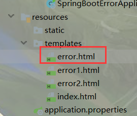 如果我们需要将所有的异常同一跳转到自定义的错误页面,要再src/main/resources/templates 目录下创建 error.html 页面。