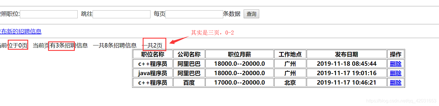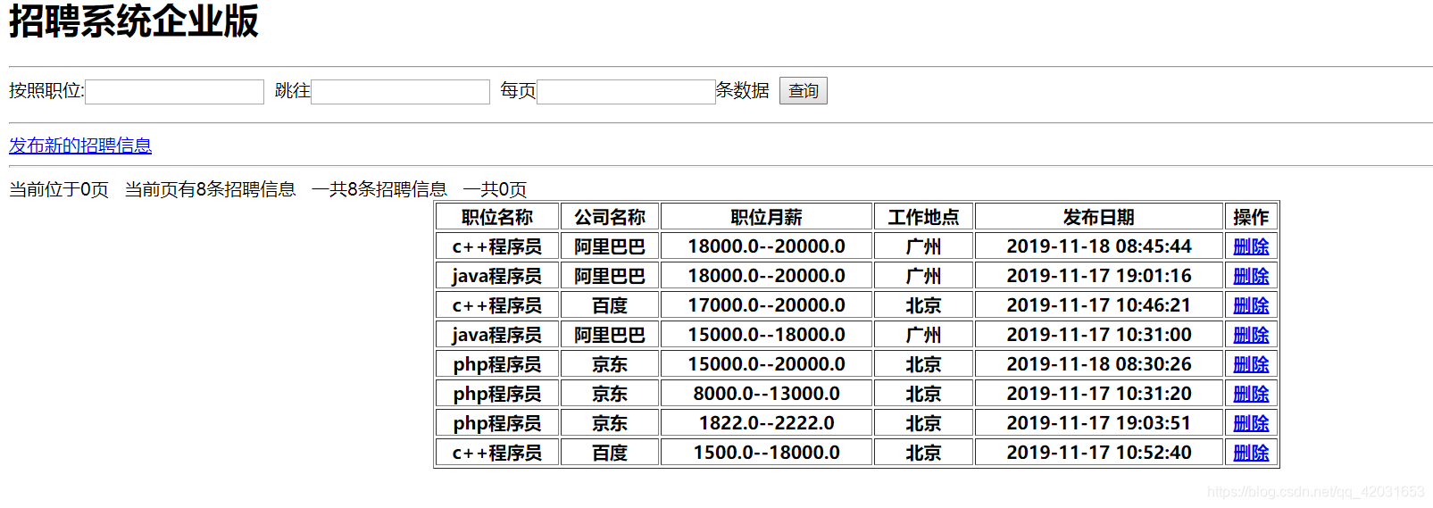 主页面(包含查询的表格,跳转增加招聘信息的连接)