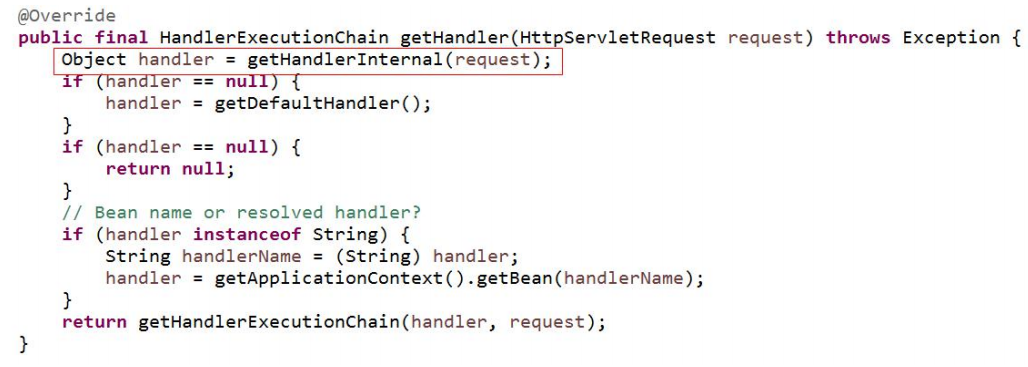 HandlerExecutionChain getHandler(HttpServletRequest request);