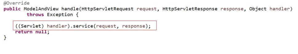 SimpleServletHandlerAdapter 其实是一个 Servlet 的适配器,其最终执行的方法是 Servlet的 service 方法
