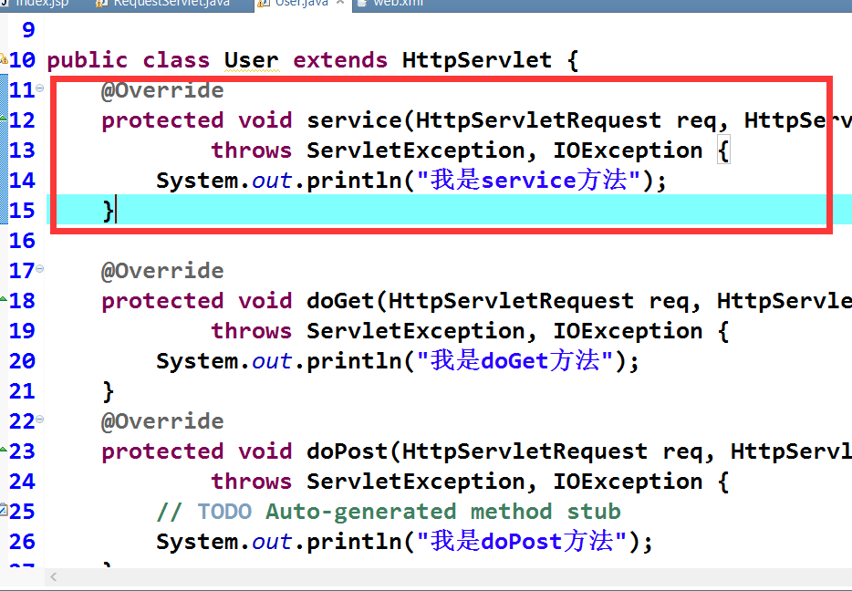 这里我们会发现,有service存在时,无论你是post还是get,都会去service方法。当servlet中没有声明对应的请求处理方法,则会报405错误。
