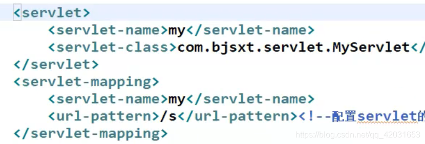 servlet和servlet-mapping,servlet和servlet-mapping中的servlet-name需要一模一样,servlet-class是写呢创建的class的全限定路径(包名+类名),url-pattern是表是配置servlet访问的别名。用在url上。