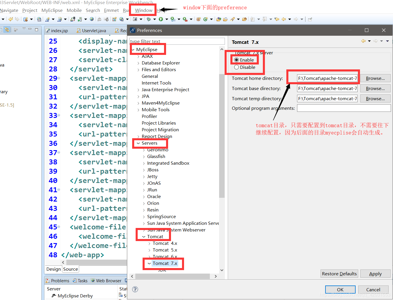 2.方式相对于简单很多,但是需要你的myeclipse以及配置了tomcat目录: