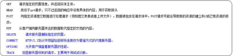 HTTP1.1 新增了五种请求方法:OPTIONS, PUT, DELETE, TRACE 和CONNECT 方法。
