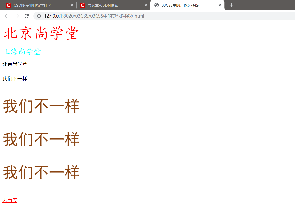“去百度” 变红是因为我鼠标放在了上面。