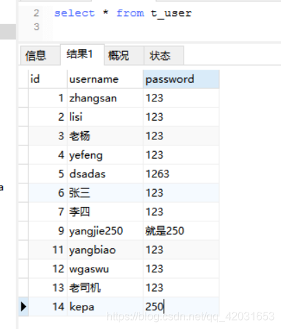 select * from t_user