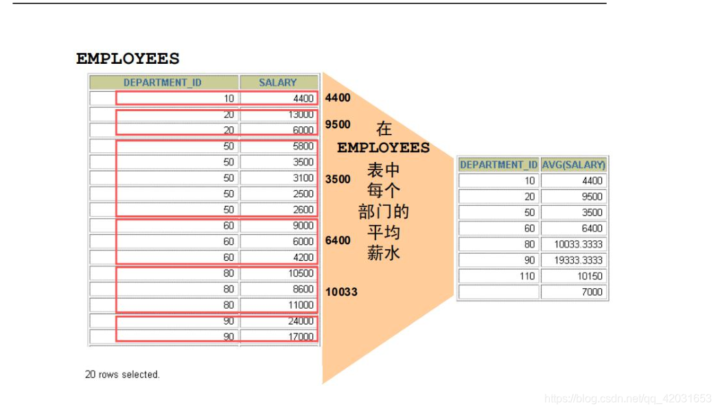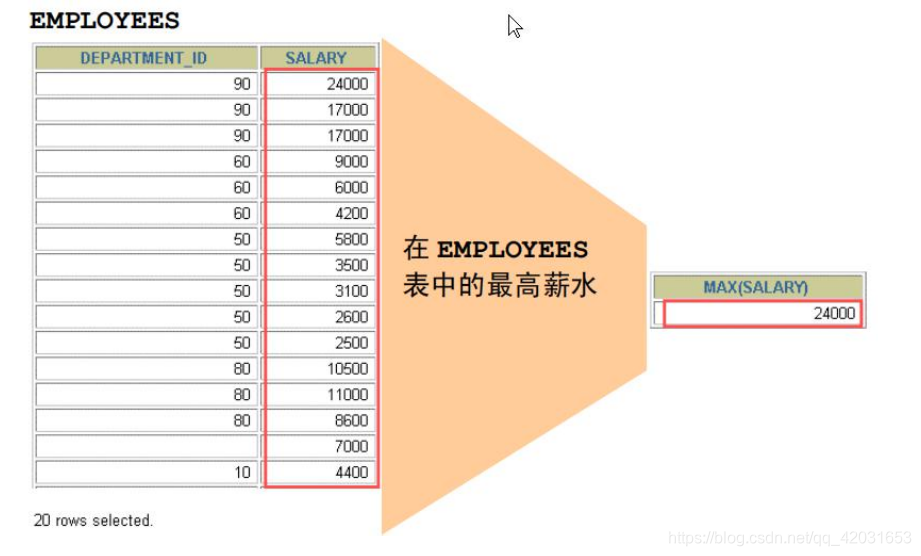 组函数操作行集,给出每组的结果。组函数不象单行函数,组函数对行的集合进行操作,对每组给出一个结果。这些集合可能是整个表或者是表分成的组。