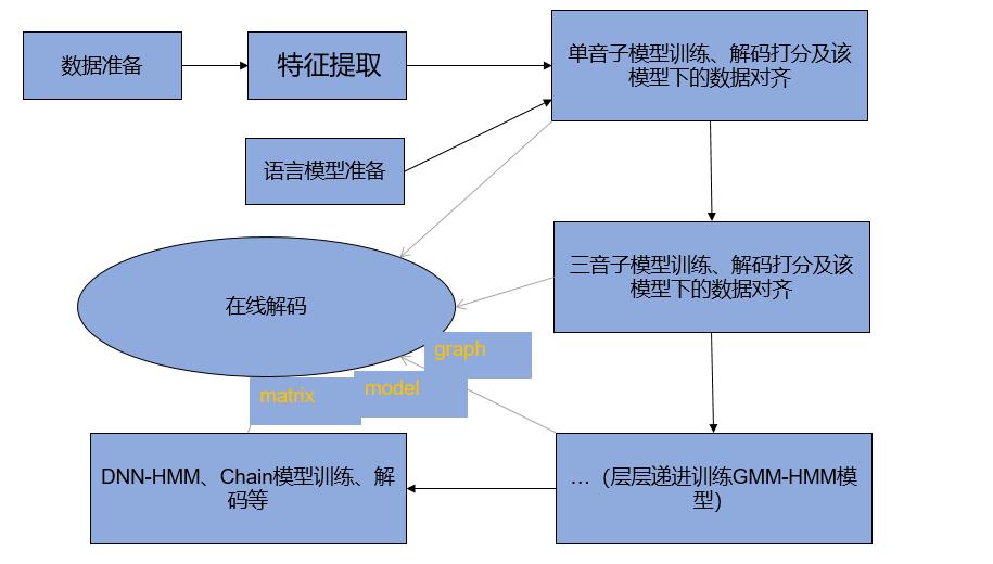 在上几篇文章我们已经介绍了数据处理、特征提取及声学单元处理,本节我们要介绍语音识别系统中关键的语言模型训练。关于语音识别系统整体流程,我们本应该在第一篇文章就该拿出来,小编最近日夜颠倒,时差有点乱,逻辑混乱,语音识别系统流程图现在给大家奉上: