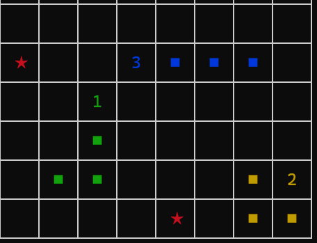 - 在两条蛇进入对峙局面时,如果场上还有第三条蛇,那么蛇会选择一个其他蛇下一步无法到达的格子,从而避免蛇头相撞