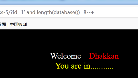 说明:利用此语句与二分法结合可得出当1‘ and length(database())=8--+返回正确结果,所以当前数据库的长度为8个字符。