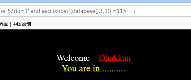 输⼊1' and ascii(substr(database(),1,1))=115 --+,显⽰存在,所以数据库名的第⼀个字符的ascii值为115,即⼩写字母s。 .