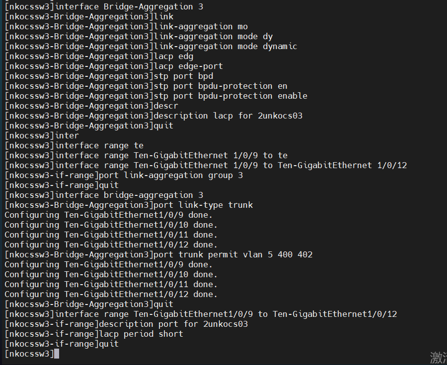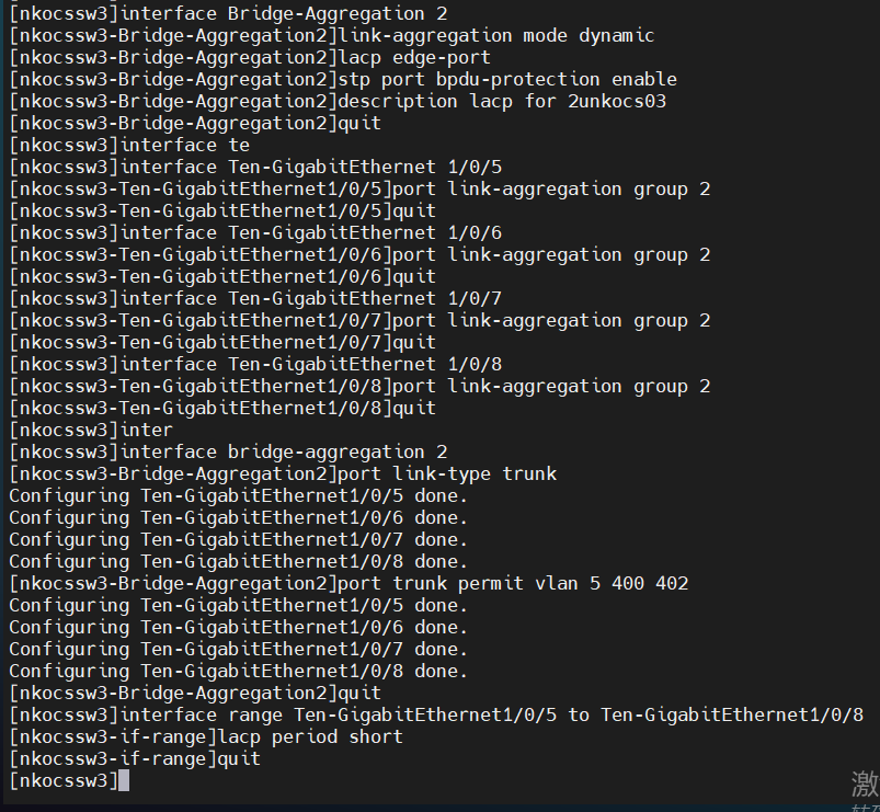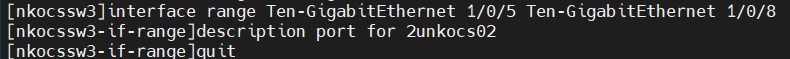 [nkocssw3]interface range Ten-GigabitEthernet1/0/5 to Ten-GigabitEthernet1/0/8