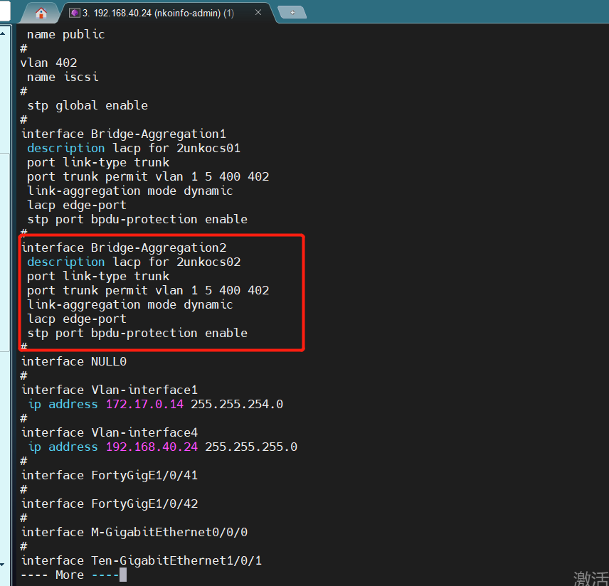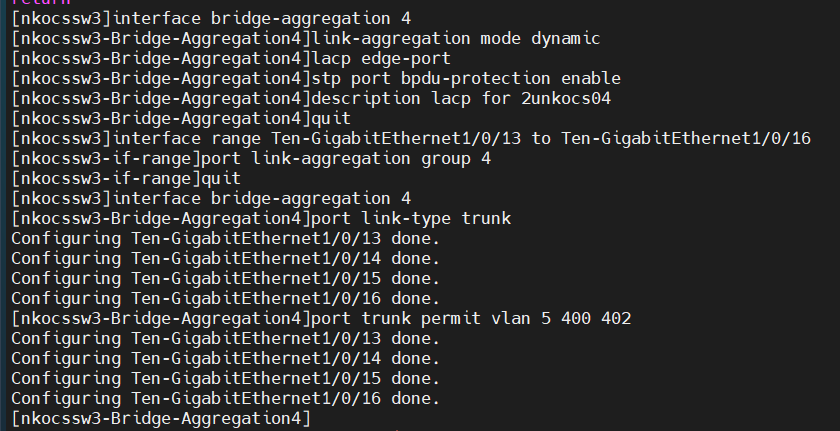 [nkocssw3-Bridge-Aggregation2]lacp edge-port