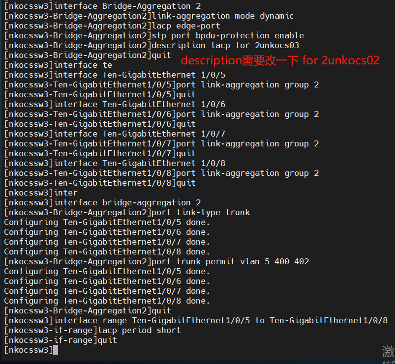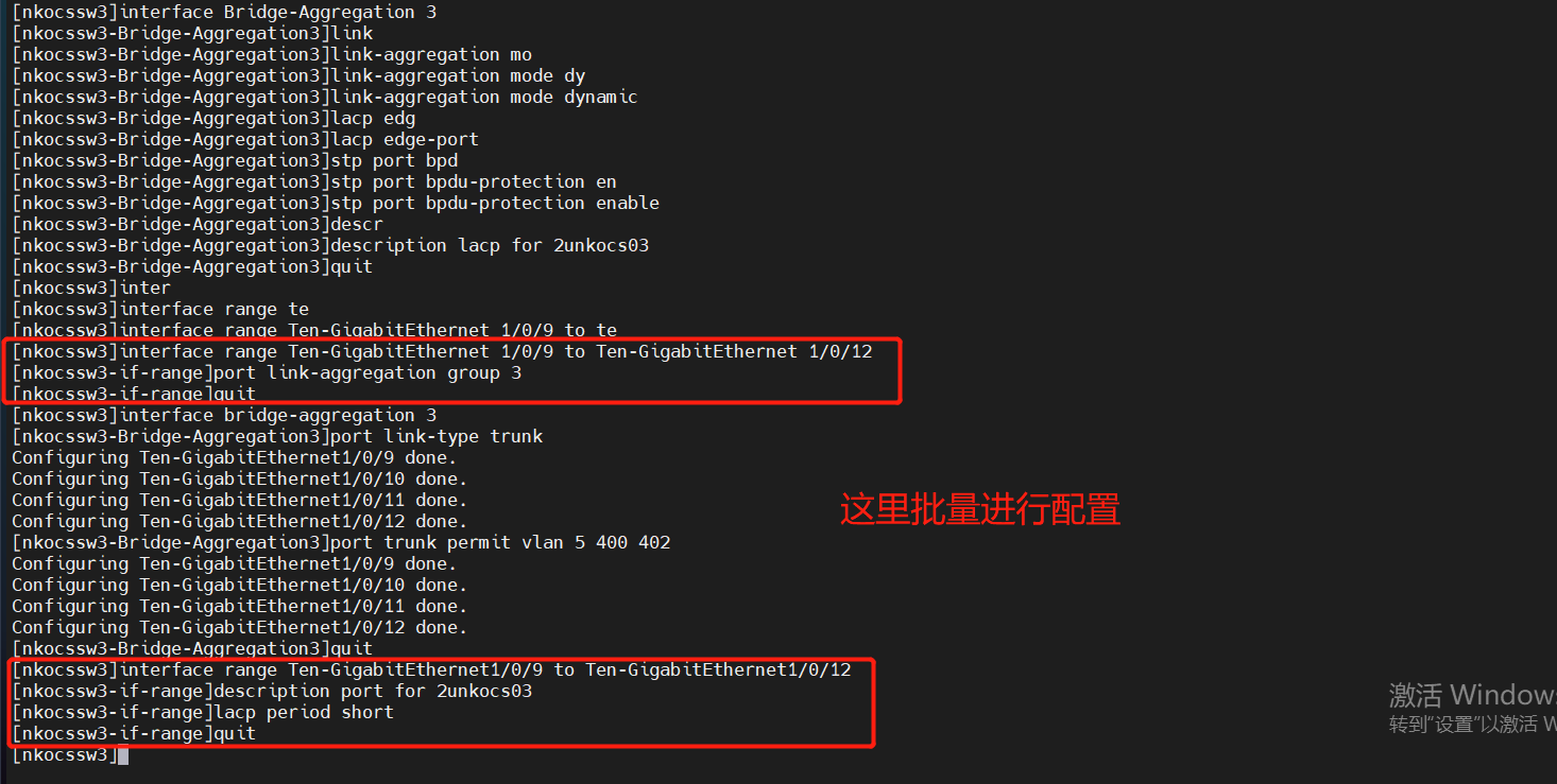 再举例LACP4,同样是批量进行配置