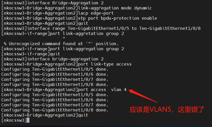 [nkocssw3-Bridge-Aggregation2]port access vlan 5