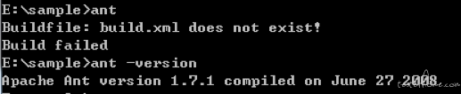 环境变量配置成功验证-》dos中输入ant,提示:Buildfile: build.xml does not exist!