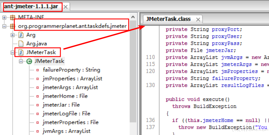 2、将JMeter所在目录下extras子目录里的ant-JMeter-1.1.1.jar复制到Ant所在目录lib子目录之下,这样Ant运行时才能找到"org.programmerplanet.ant.taskdefs.jmeter.JMeterTask"这个类,从而成功触发JMeter脚本