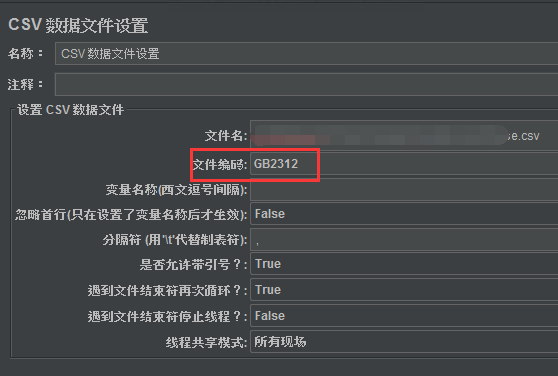 jmeter-csv里的中文乱码,修改文件设置文件编码