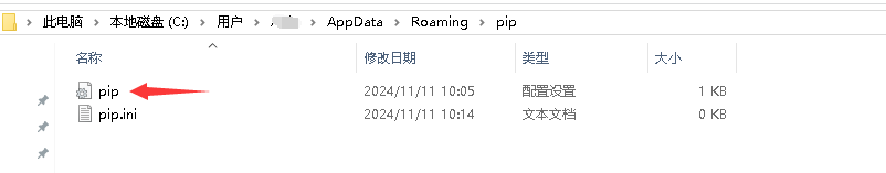 3、进入pip文件夹(此时路径为C:\Users\xxx\AppData\Roaming\pip)