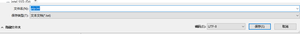(*****配置文件新建方法:新建txt文档,打开新建的txt文档,点击文件另存为,将文件名设置为pip.ini)