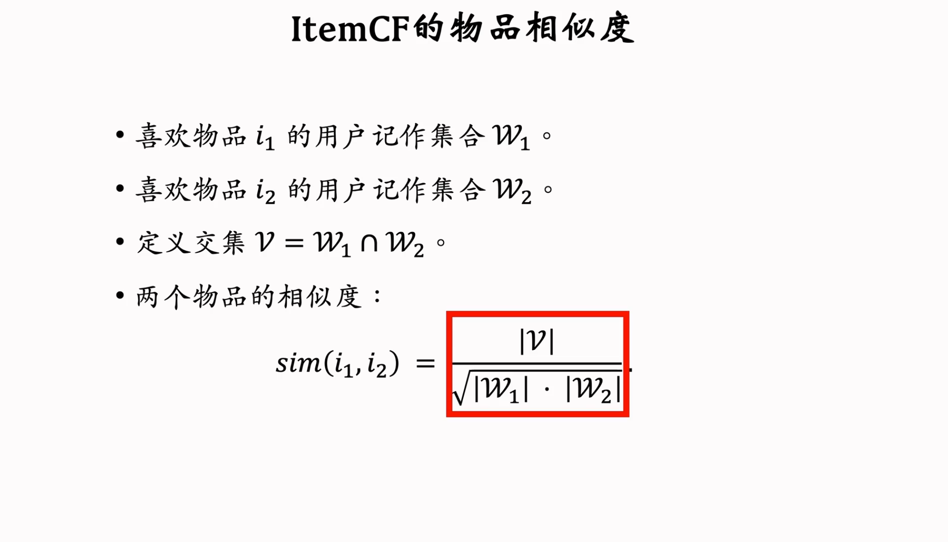 分子是两个用户所使用的物品交集的数量
