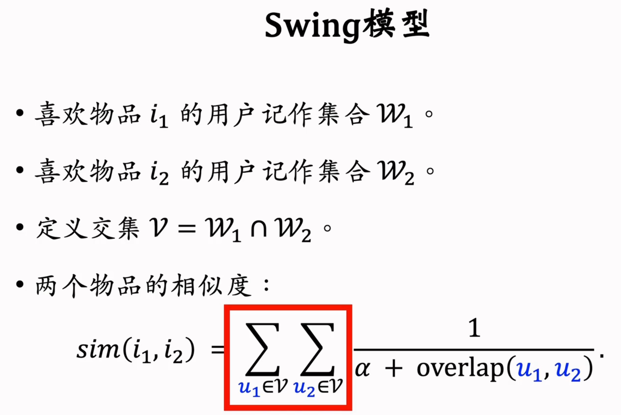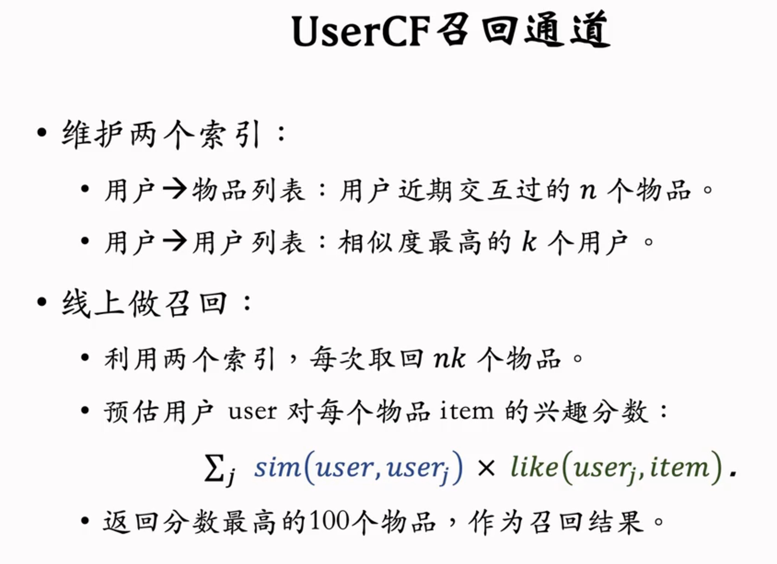 先计算用户相似度,再计算其他用户对于这个物品的兴趣,加权求和