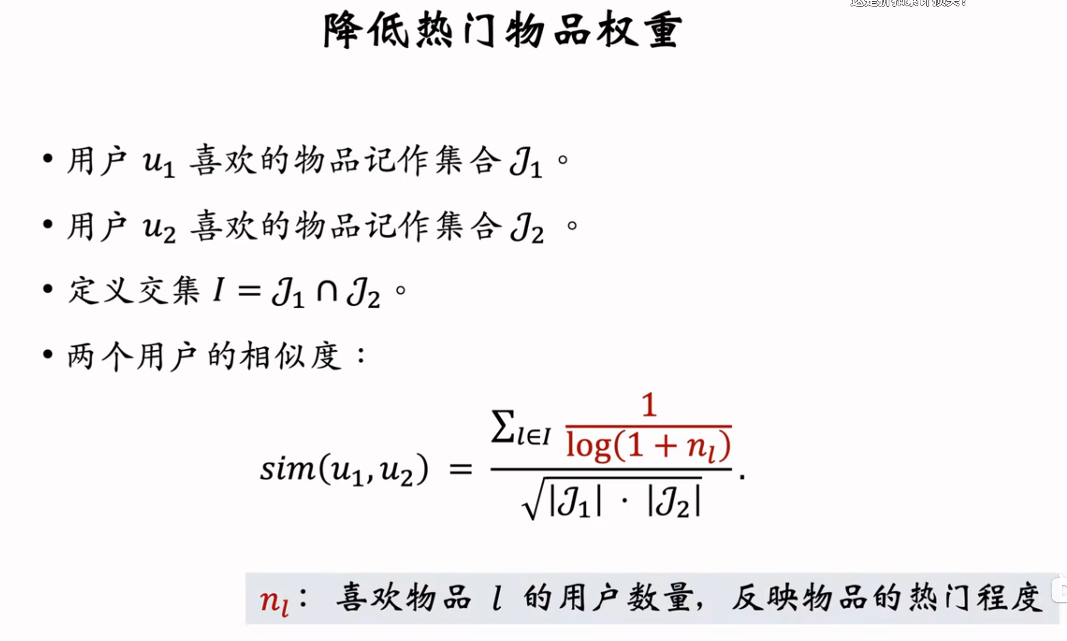 我们可以先降低热门物品权重,使得结果更准确