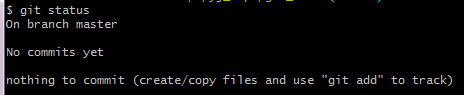 当前状态 ---> 当前正处于master分支下,没有可提交的内容(建立的仓库没有记录任何文件的任何状态); 提交(commit)是指“记录工作树中所有文件的当前状态”