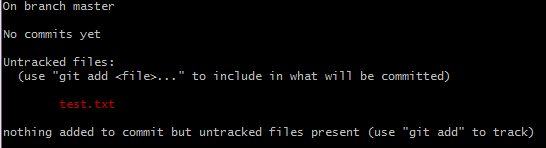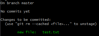 当前状态 ---> test.txt文件显示在Changes to be committed中