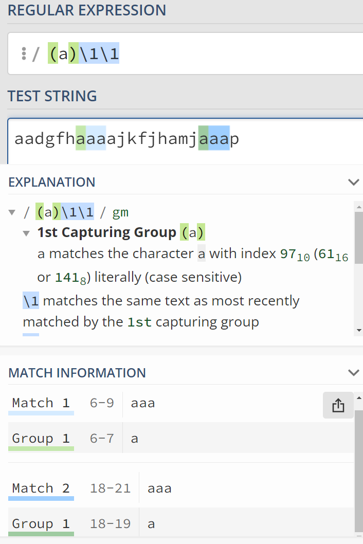 \1代表之后一个字符,一定需要是括号中已经匹配的字符"a"。