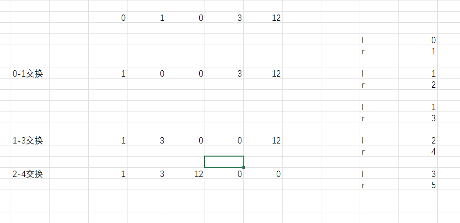 public void moveZeroes(int[] nums) { int lengthNum = nums.length; int left = 0,right = 0; while (right < lengthNum) { if (nums[right] != 0) { swap(nums, left, right); left++; } right++; } } public void swap(int[] nums, int left, int right) { int temp = nums[right]; nums[right] = nums[left]; nums[left] = temp; } public static void main(String[] args) { int[] nums = {0,1,0,3,12}; Solution solution = new Solution(); solution.moveZeroes(nums); System.out.println(Arrays.toString(nums)); }
