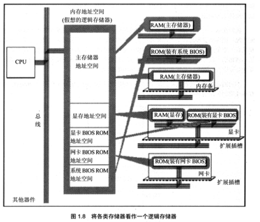 对CPU来说,系统中的所有存储器中的存储单元都处于一个统一的逻辑存储器中,它的容量受CPU寻址能力的限制,这个逻辑存储器即是我们所说的“内存地址空间”。