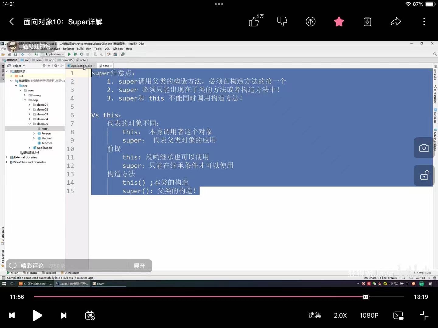 package com.oop.demo05; //学生 is 人,派生类,子类 //子类继承了父类,就会拥有父类的全部方法! public class Student extends Person { //Ctrl + H:可以把类的分属写在右边 private String name = "qingjiang"; public void test(String name){ System.out.println(name); System.out.println(this.name); System.out.println(super.name);//在子类里面访问父类的name // student.test("秦疆"); //输出得到:秦疆 //qingjiang //kuangshen } public void print(){ System.out.println("Student");} public void test1(){ print(); this.print(); super.print();//在子类里面访问父类的name // student.test1(); // Student // Student // Person } //无参构造器 public Student(){ //隐藏代码,默认调用了父类的无参构造 //suepr();调用父类构造器必须要在子类的第一行 System.out.println("Studengt无参执行了!"); } }