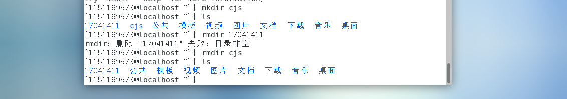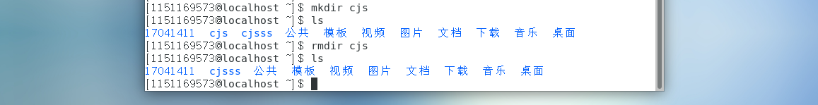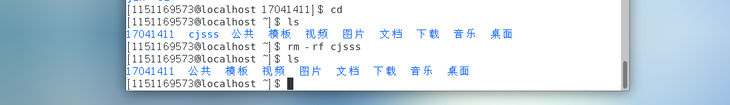 删除本目录下文件夹及文件rm -rf cjsss(强制删除)