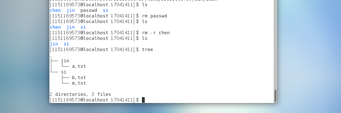 (10)删除学号命名的文件下passwd文件,以及删除当前目录下第三个子文件夹