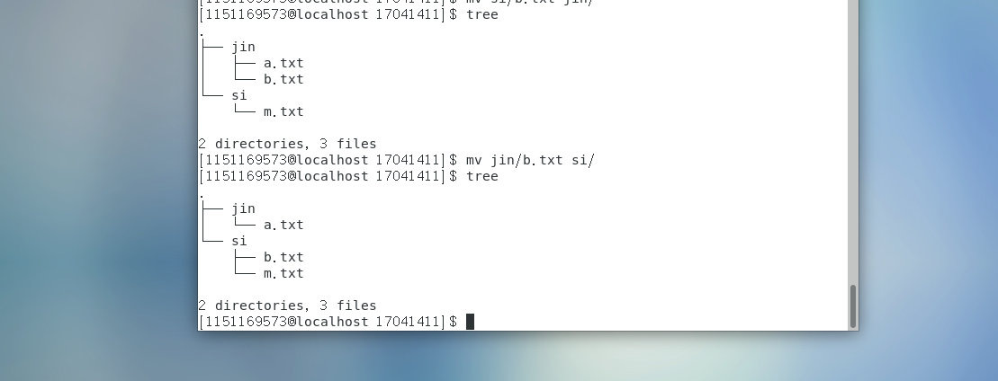 (6)返回自己学号命名的目录,查看tree命令是否可以使用,不能使用的话,安装tree,安装成功后使用该命令