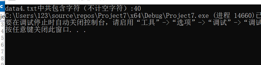 printf("data4.txt中共包含字符(不计空字符):%ld",i);