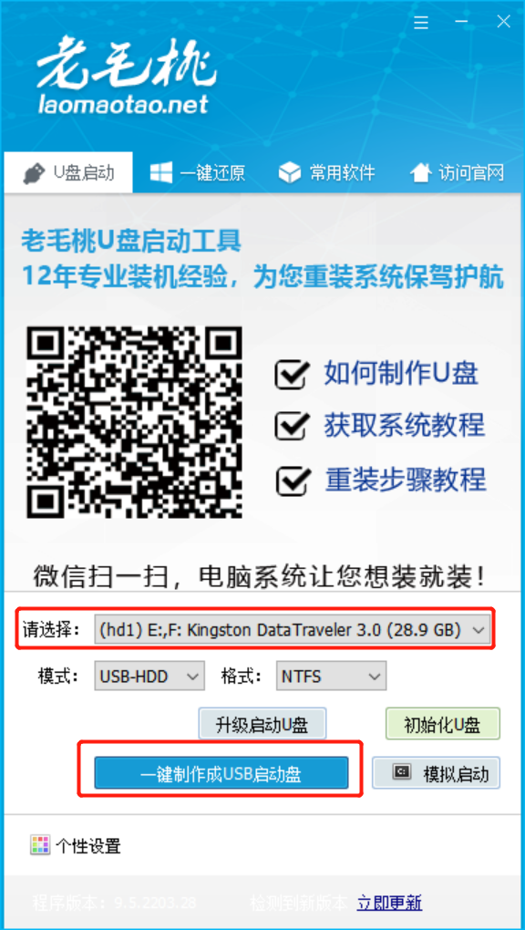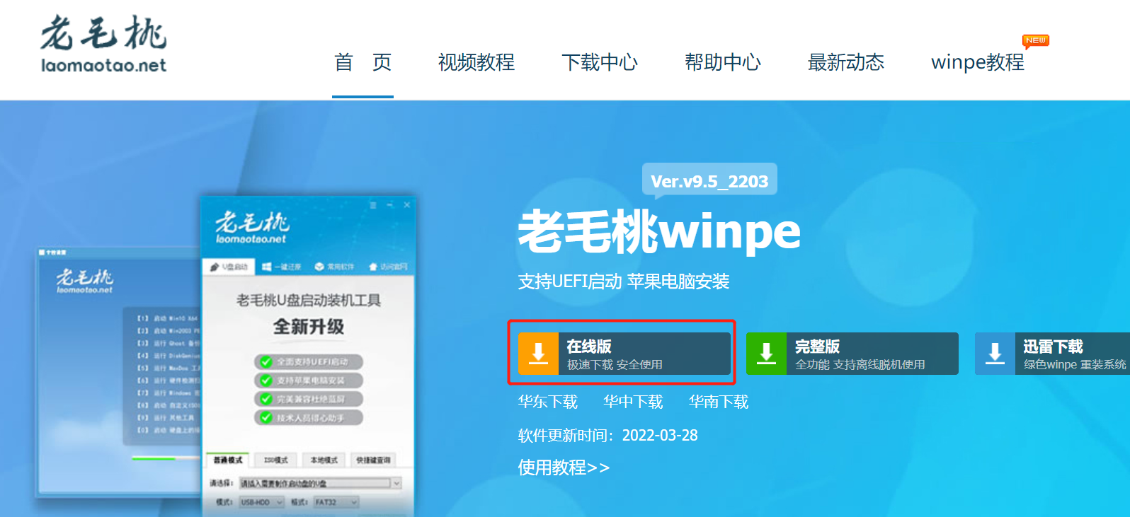 1. 下载一个PE用具,如:老毛桃/U启动的U盘启动装机工具