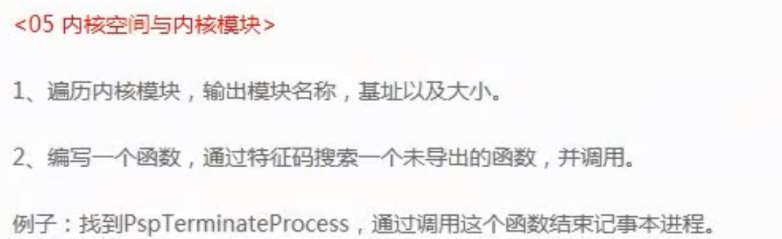 - WDK说明文档中只包含了内核模块导出的函数,对于未导出的函数,则不能直接使用。