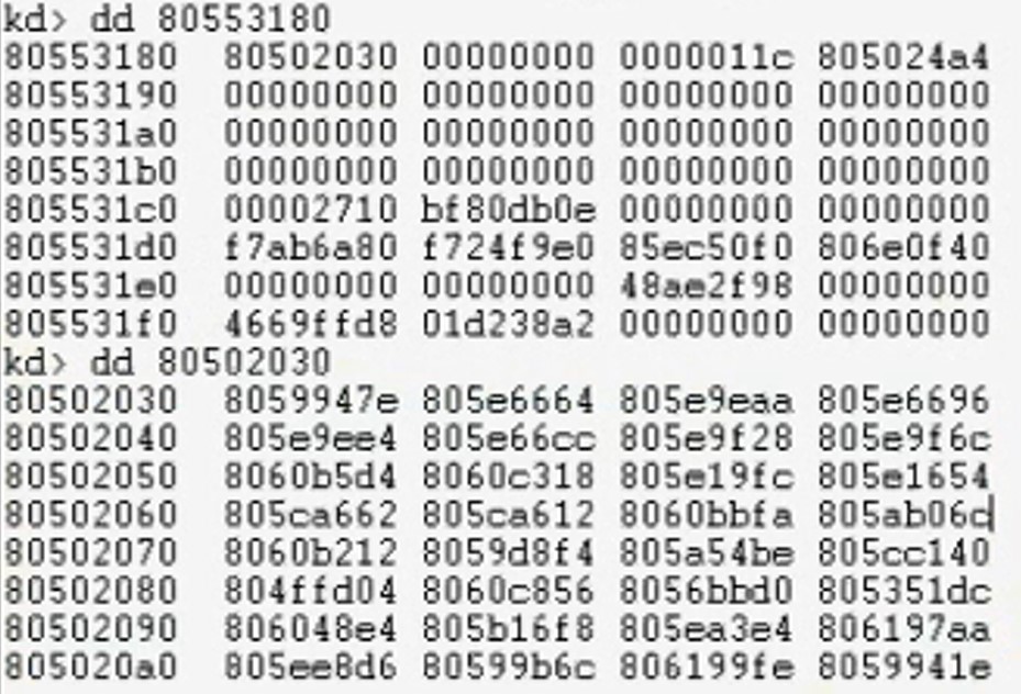 - kd> dd 80502030+7A*4得到NtOpenProcess函数地址