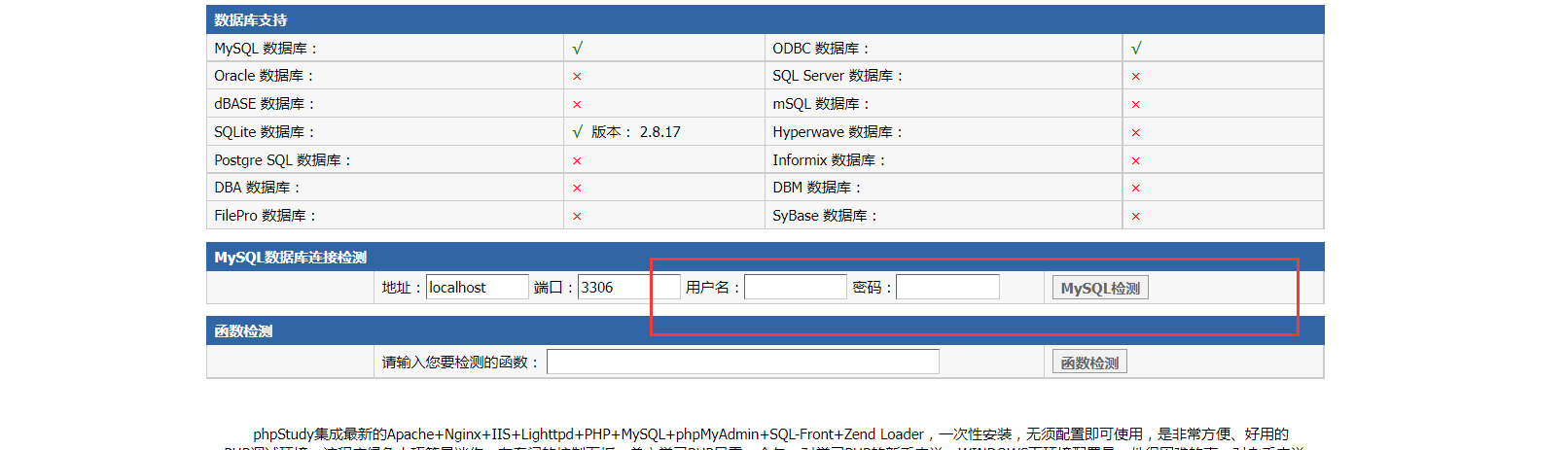 吧获取到的数据进行一个拼接. 这个测试是通过前端phpinfo页面进行测试的. 这里出现了mysql的测试接口.