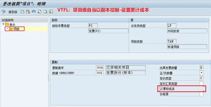 - VTFL项目级自定义TAN的赋值控制中勾选“累计成本”标志