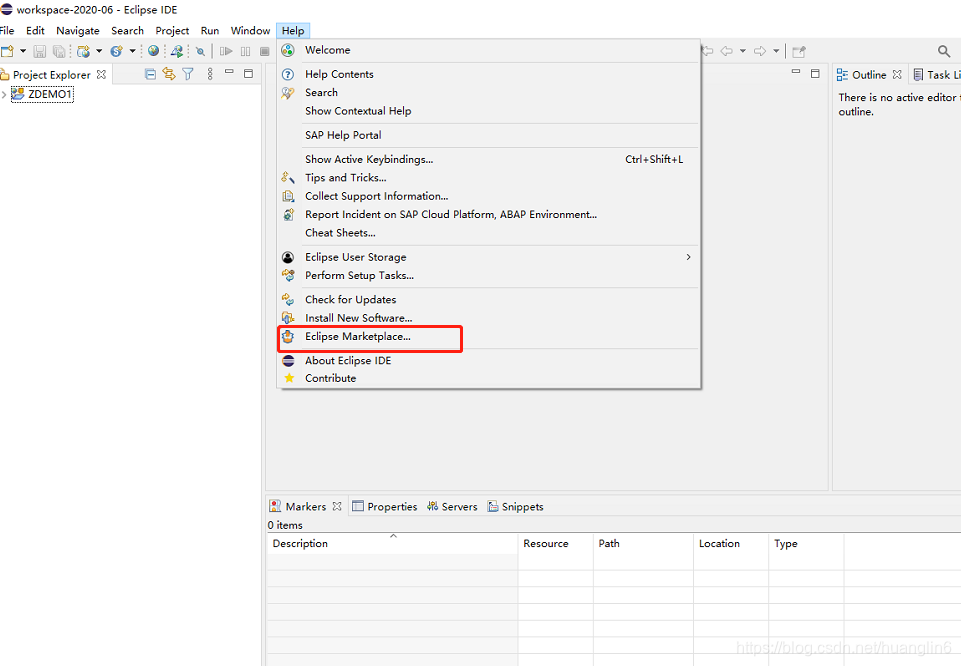 2、eclipse选择help->Eclipse Marketplace